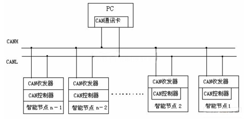圖1 n 個(gè)節(jié)點(diǎn)的CAN 網(wǎng)絡(luò)結(jié)構(gòu)圖