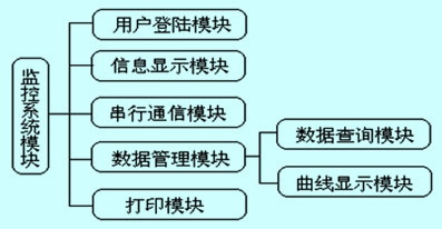 本系統(tǒng)需要監(jiān)控一系列的參數(shù),記錄歷史數(shù)據(jù)及顯示實(shí)時(shí)曲線(xiàn)圖,并實(shí)時(shí)地顯示報(bào)警事件,提供診斷信息,使監(jiān)控人員可以及時(shí)了解異常情況,查詢(xún)故障內(nèi)容??刂破鞯闹饕刂茖?duì)象有氫氣供給、空氣供給、冷卻水循環(huán)、電堆功率等,監(jiān)控軟件對(duì)其中關(guān)鍵參數(shù)進(jìn)行實(shí)時(shí)顯示、報(bào)警顯示及數(shù)據(jù)存儲(chǔ)等。根據(jù)系統(tǒng)分析確定的目標(biāo)和功能,采用模塊化設(shè)計(jì)方法,進(jìn)行了系統(tǒng)的界面結(jié)構(gòu)設(shè)計(jì)。本系統(tǒng)由多個(gè)模塊組成,每一個(gè)模塊完成一項(xiàng)獨(dú)立的功能,模塊與模塊之間通過(guò)數(shù)據(jù)相關(guān)聯(lián)。其關(guān)系如圖2所示。