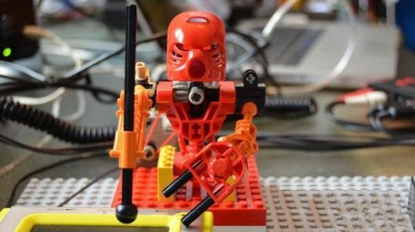樂隊里的每位成員都是帶有橡皮筋和滑輪的樂高生化戰(zhàn)士形象,機器人的手臂通過一個 Arduino Uno 控制器連接一臺 iPad ,iPad 運行 Nord Beat app (步進音序器應用軟件)。這位風趣的音樂家同時為這些機器人配備了一系列合成樂器和鼓,通過這些設備,這支樂高機器人樂隊可以彈奏一些預設的歌曲,或是通過應用程序人為設置的音樂,實現(xiàn)現(xiàn)場實時演奏。