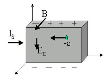 霍爾效應(yīng)是電磁效應(yīng)的一種,這一現(xiàn)象是美國物理學(xué)家霍爾于1879年在研究金屬的導(dǎo)電機(jī)制時(shí)發(fā)現(xiàn)的。霍爾效應(yīng)定義了磁場和感應(yīng)電壓之間的關(guān)系。當(dāng)電流通過一個(gè)位于磁場中的導(dǎo)體的時(shí)候,磁場會(huì)對(duì)導(dǎo)體中的電子產(chǎn)生一個(gè)垂直于電子運(yùn)動(dòng)方向上的的作用力,從而在垂直于導(dǎo)體與磁感線的兩個(gè)方向上產(chǎn)生電勢(shì)差。