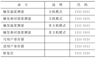 在啟動(dòng)傳輸后,隨后傳輸?shù)氖鬃止?jié)包括7位的I2C總線設(shè)備地址和一個(gè)SDA方向位,讀為“1”,寫(xiě)為“0”。在第8個(gè)SCL時(shí)鐘下降沿之后,通過(guò)拉低SDA引腳(ACK位),指示傳感器數(shù)據(jù)接收正常。在發(fā)出測(cè)量命令之后主機(jī)必須等待測(cè)量完成。基本的命令在表2中進(jìn)行說(shuō)明,有兩種不同的方式可選——主機(jī)模式或非主機(jī)模式。
