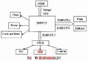 電源電路是整個(gè)電路的核心模塊,C6000系列DSP采用的是雙電源供電方式,即內(nèi)核與I/O都需要供電。TMS320C6713BGDP300型DSP,其主頻最高可達(dá)到300MHz,它對(duì)供電電壓的要求是:內(nèi)核電壓(CVDD,core voltage)為1.26V,I/O電壓(DVDD,device voltage)則與外部其他芯片相同,為3.3V。輸入電壓為5V,其中3.3V電壓由LDO芯片TPS75801來(lái)產(chǎn)生,1.26V由DC/DC穩(wěn)壓芯片TPS54310產(chǎn)生。值得注意的是在加電過(guò)程中,要保證CVDD先得到供電,DVDD后得到供電,至少兩者同時(shí)得到供電,間隔不得小于1s,否則會(huì)導(dǎo)致DSP不正常工作,甚至損壞器件。