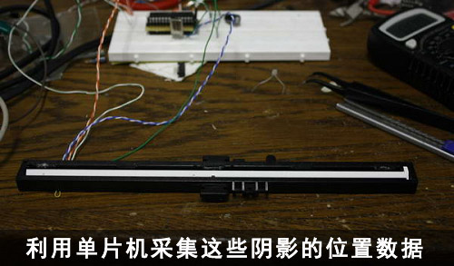 這是利用掃描儀的線陣CCD傳感器和顯示器結(jié)合,DIY的多點(diǎn)觸控顯示器。