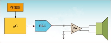 這個(gè)簡(jiǎn)單的原則可能最為重要,但卻經(jīng)常被系統(tǒng)設(shè)計(jì)者所忽略。功率放大器無法區(qū)分噪音、咔嗒聲和信號(hào)。如果過早地開啟功放,它會(huì)不加區(qū)分地放大所有輸入信號(hào)。便攜式產(chǎn)品播放電路通常包含數(shù)字信號(hào)存儲(chǔ)器、數(shù)模轉(zhuǎn)換器(DAC)、功放、揚(yáng)聲器或耳機(jī)(圖1)。存儲(chǔ)器中的數(shù)字信號(hào)經(jīng)過解碼后發(fā)送到DAC進(jìn)行轉(zhuǎn)換,DAC的模擬輸出通過電容交流耦合到功放的輸入端,放大器必須能夠提供足夠的電流驅(qū)動(dòng)低阻揚(yáng)聲器。如上所述,放大器使能后將放大進(jìn)入其輸入端的任何信號(hào),包括有用信號(hào)、噪聲、咔嗒或嘭嘭聲。