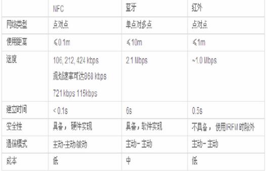 藍(lán)牙、NFC、紅外間數(shù)據(jù)對(duì)比