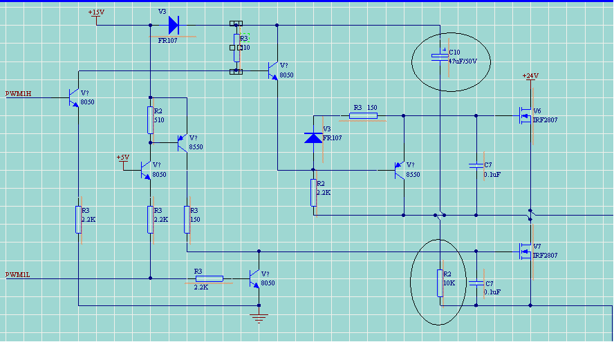 圖中靠進(jìn)R3的那個(gè)三極管應(yīng)該是S8550,畫圈的電容在電路中起提升電壓的作用。(當(dāng)電機(jī)旋轉(zhuǎn)的時(shí)候15V的電壓驅(qū)動(dòng)不了MOS管,必須提高驅(qū)動(dòng)電壓) 。