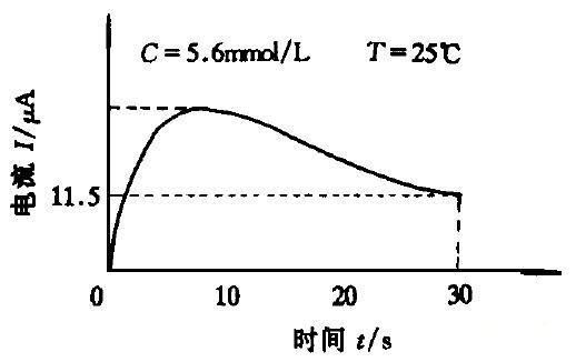 使用參比電極的測量步驟是:先將參比電極插入測試儀的電極插口中, 儀器測得電流I0 ,該過程稱作標定;再用酶電極對血樣進行正常的測量,測得電流I , 則血糖濃度按如下公式計算: