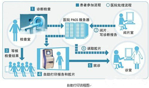 富士通K-1000醫(yī)用多功能自助打印工作站通過網(wǎng)絡(luò)與醫(yī)院的HIS、LIS、PACS等系統(tǒng)服務(wù)器連接,可以進(jìn)行化驗(yàn)單、診斷報(bào)告、膠片的自助打印。當(dāng)患者拍完CT/CR/DR等影像后,醫(yī)生編輯影像然后存入PACS系統(tǒng),接著就可以對(duì)此影像進(jìn)行診斷,并把報(bào)告發(fā)送到PACS系統(tǒng)存儲(chǔ)?;颊吣弥t(yī)院指定的就診卡(可以是條碼、磁卡、醫(yī)???、二代證等)在K-1000上刷一下就可以輕松領(lǐng)取自己的膠片及診斷報(bào)告。K-1000打印一份膠片及診斷報(bào)告僅1 分多種,而且可以24小時(shí)工作,這樣不僅降低了醫(yī)院的人力成本,排除了人為出錯(cuò)的因素,也給患者帶來了方便。