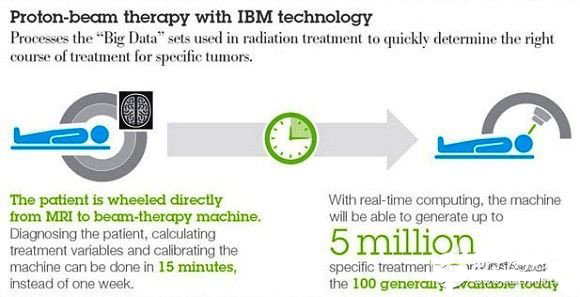 今日的質子療法需要醫(yī)療與技術人員花一個星期時間來安排質子束路徑以摧毀腫瘤,這意味著如果腫瘤在同時間不斷成長,成功率就會降低;而IBM在Power 730叢集計算機所執(zhí)行的分析軟件,能在15分鐘之內就繪制出同樣的質子束路徑圖