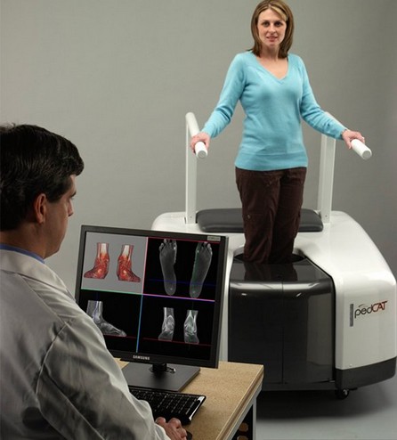 該設(shè)備可用來在承重和非承重狀態(tài)下進(jìn)行足部和踝關(guān)節(jié)的3D成像以及圖像重建等,可進(jìn)行術(shù)前評估、骨折脫位檢查、關(guān)節(jié)炎監(jiān)測以及骨髓炎早期檢測等。