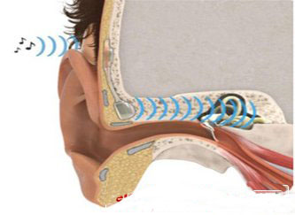 圖 通過(guò)將骨傳導(dǎo)助聽(tīng)器植入中耳的位置,聽(tīng)力障礙的病人可以恢復(fù)正常的聽(tīng)力。