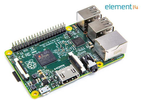 圖為e絡(luò)盟提供的新型樹(shù)莓派2代B型板,運(yùn)行速度較前代提升6倍