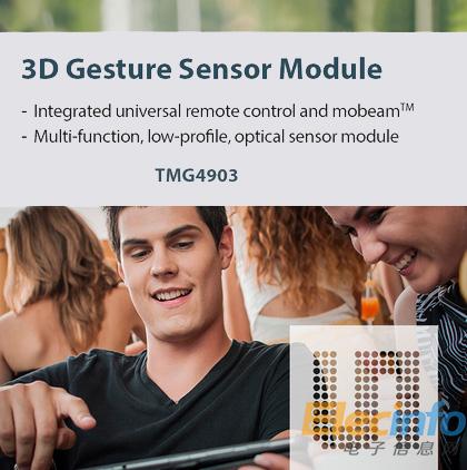 中國,2015年7月20日——全球領(lǐng)先的高性能模擬IC和傳感器供應(yīng)商ams(艾邁斯,SIX股票代碼:AMS)今日推出新的TMx4903系列先進(jìn)光學(xué)傳感器模塊,集成了通用遙控器、條形碼仿真、RGB顏色傳感、接近感測和3D手勢檢測功能,封裝體積只有5.0x2.0x1.0mm。