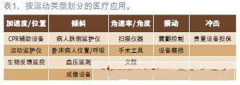通過(guò)一個(gè)功耗極低的緊湊器件來(lái)精確檢測(cè)和測(cè)量運(yùn)動(dòng)的能力,幾乎對(duì)任何涉及到運(yùn)動(dòng)的應(yīng)用都是有價(jià)值的,甚至對(duì)那些運(yùn)動(dòng)要求不是很關(guān)鍵的應(yīng)用也是有價(jià)值的。表1按運(yùn)動(dòng)類型列出了一些基本醫(yī)療應(yīng)用。需要解決更多挑戰(zhàn)的更高級(jí)應(yīng)用將在稍后討論。