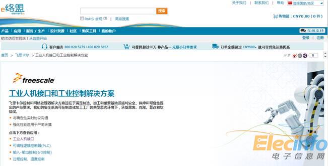 e絡盟平臺提供的飛思卡爾工業(yè)人機接口和工業(yè)控制解決方案