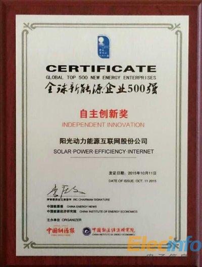綠能寶 新能源企業(yè)500強 自主創(chuàng)新獎