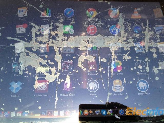 自蘋果筆記本產(chǎn)品及新系列發(fā)售以來(lái),開始有非常多的使用者通過網(wǎng)絡(luò)表示自己的筆記本屏幕出現(xiàn)問題,屏幕上出現(xiàn)大片的污漬妨礙使用。這一問題是由于即部分筆記本電腦顯示屏的抗反射涂層掉落,其結(jié)果就是顯示屏上會(huì)出現(xiàn)丑陋的污漬。