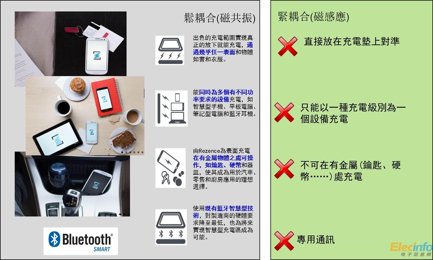 標(biāo)準(zhǔn)的統(tǒng)一是無(wú)線(xiàn)充電得以大量普及的重要因素。AirFuel Alliance已發(fā)布Rezence基本系統(tǒng)標(biāo)準(zhǔn)(BSS)1.2.1標(biāo)準(zhǔn),并與中國(guó)通訊標(biāo)準(zhǔn)化協(xié)會(huì)(CCSA)、日本橫須賀研究園寬帶無(wú)線(xiàn)論壇(BWF)和韓國(guó)電訊技術(shù)協(xié)會(huì)(TTA)簽署了合作協(xié)議,旨在采納該最新標(biāo)準(zhǔn)作為各自獨(dú)立管理的國(guó)家無(wú)線(xiàn)電力傳輸技術(shù)標(biāo)準(zhǔn)元素。此外,藍(lán)牙技術(shù)聯(lián)盟(SIG)也已發(fā)布包含Rezence無(wú)線(xiàn)充電標(biāo)準(zhǔn)的藍(lán)牙低能耗(BLE)配置檔。美國(guó)已通過(guò)首個(gè)松耦合無(wú)線(xiàn)充電的發(fā)射器,預(yù)計(jì)采用松耦合的終端電子設(shè)備將于今年底或2016年初面世。相信配置發(fā)射器和接收器的基礎(chǔ)設(shè)施就緒,松耦合的發(fā)展指日可待。