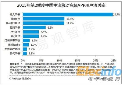 2015年第2季度中國主流移動音頻APP用戶滲透率