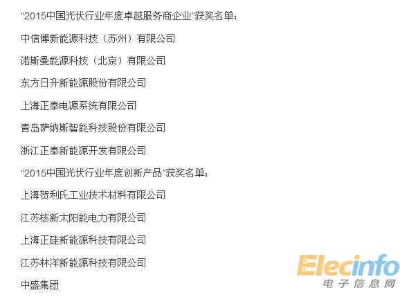 眾所周知,這個評選活動是光伏界比較知名的年度盛典,每個光伏企業(yè)都力爭獲此殊榮。歷經數(shù)月后,終于從創(chuàng)新能力、行業(yè)帶動性、營利能力、社會貢獻、創(chuàng)新服務、同行業(yè)市場競爭表現(xiàn)等方面決出了各個獎項的獲得者。以下就是本次出爐的獲獎名單: