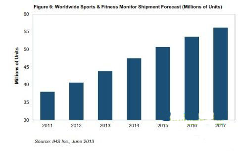體育與健身監(jiān)測計出貨2017將增至2.5億個