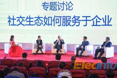騰訊企點副總裁譚毅在會上與嘉賓探討“社交生態(tài)如何服務于企業(yè)”