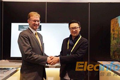 微鯨科技CEO李懷宇與康寧公司CEO Wendell Weeks共同見(jiàn)證三極限電視發(fā)布