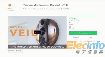 4月27日 VEIU智能可視門鈴在Kickstarter上眾籌突破15萬(wàn)美元