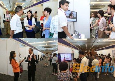 昌平區(qū)副區(qū)長蘇貴光巡展/海淀區(qū)副區(qū)長、中關村海淀園管委會主任李長萍聽硅谷參展商講解/硅谷展商接受央視采訪/展區(qū)盛況