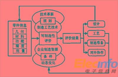 上圖表明,輸入信息是經(jīng)過處理的設(shè)計信息模型,核心過程是對產(chǎn)品的可制造性評價,其主要依據(jù)有兩類: