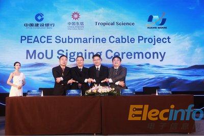 回歸線科學(xué)有限公司與中國(guó)-東盟信息港股份有限公司在第三屆亞太海纜峰會(huì)上正式宣布投資PEACE海纜項(xiàng)目,并且會(huì)同中國(guó)建設(shè)銀行股份有限公司與華為海洋網(wǎng)絡(luò)有限公司共同簽署了推進(jìn)該項(xiàng)目的合作諒解備忘錄(MoU)。