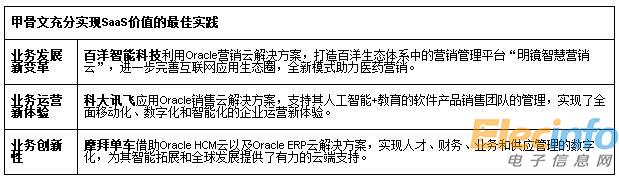 作為全球云技術領導者,甲骨文為客戶持續(xù)提供完整的SaaS端到端解決方案,以及全面、豐富、互聯(lián)、創(chuàng)新的云技術套件、快速的部署、靈活的框架以及新技術的升級,展現(xiàn)SaaS的核心價值,具有行業(yè)代表性的最佳實踐包括百洋智能科技、科大訊飛、摩拜單車等,展現(xiàn)幫助中國企業(yè)積極擁抱云時代的承諾。