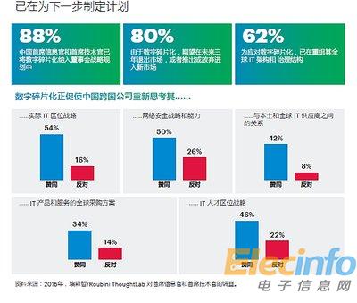 報告對來自八個國家的400多位跨國公司首席信息官(CIO)和首席技術官(CTO)展開了調研。有五分之四的中國受訪者稱,未來三年,“數(shù)字碎片化”現(xiàn)象可能導致其公司退出、延遲甚至放棄進入某些海外市場。