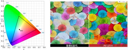 對(duì)于追求色彩還原度的用戶來(lái)說(shuō),優(yōu)派PX727-4K投影機(jī)配備的四倍速RGBRGB六段式色輪利用涂層對(duì)R/G/B的光譜進(jìn)行過(guò)濾,以紅綠藍(lán)三種基色對(duì)色調(diào)和飽和度進(jìn)行修改,使投射的影像色彩流暢自然。此外,PX727-4K支持96%的Rec. 709寬廣色域并兼容Rec.2020,寬廣的色域使投影的照片、視頻及電影的色彩真實(shí)呈現(xiàn),減少色彩再現(xiàn)的偏差,從而接近影院的色彩顯示畫質(zhì)。