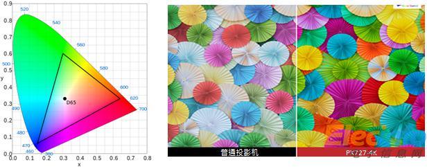 對(duì)于追求色彩還原度的用戶來說,優(yōu)派PX727-4K投影機(jī)配備的四倍速RGBRGB六段式色輪利用涂層對(duì)R/G/B的光譜進(jìn)行過濾,以紅綠藍(lán)三種基色對(duì)色調(diào)和飽和度進(jìn)行修改,使投射的影像色彩流暢自然。此外,PX727-4K支持96%的Rec. 709寬廣色域并兼容Rec.2020,寬廣的色域使投影的照片、視頻及電影的色彩真實(shí)呈現(xiàn),減少色彩再現(xiàn)的偏差,從而接近影院的色彩顯示。