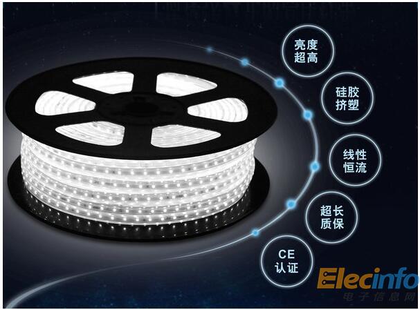 燈帶因把LED燈用特殊的加工工藝焊接在銅線或者帶狀柔性線路板上面,再連接上電源發(fā)光,發(fā)光時形狀如一條光帶而得名。又因其色彩豐富,可塑性強被廣泛運用于裝飾照明、辦公照明、貨架展柜照明及戶外亮化等領域。而高壓燈帶因其電源小型化,級聯(lián)長,塑膠原料擠出成型材質(zhì)作為安全保護膜,安裝簡單,即插即用,逐漸受到各行各業(yè)需求客戶的青睞。