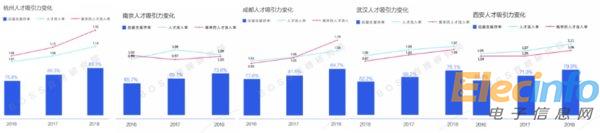 其中,2018年一季度,杭州應(yīng)屆生留存率逼近90%,接近北上深。高學(xué)歷人才(碩士及以上)流入率達(dá)到1.32,大幅領(lǐng)先其他新一線城市。