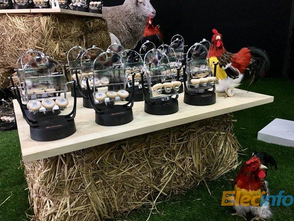 大會(huì)現(xiàn)場(chǎng)特別設(shè)置“跑步雞”展示區(qū),上圖為跑步雞腳環(huán),用于統(tǒng)計(jì)雞的運(yùn)動(dòng)步數(shù)