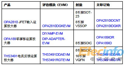 TI新型高壓放大器的封裝如下表所示。目前,TI商店和授權(quán)經(jīng)銷商可批量提供OPA189和THS3491放大器。此外,目前可通過(guò)TI商店和授權(quán)經(jīng)銷商獲得OPA2810DGKEVM評(píng)估模塊,并且OPA2810放大器于2018年第3季度投入量產(chǎn)。