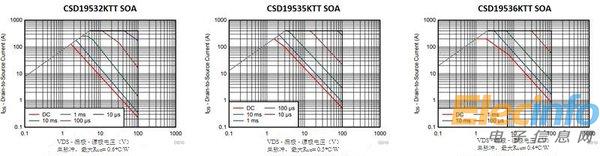 例如,如果設(shè)計(jì)輸入電壓為48V,并且希望在8ms內(nèi)限制輸出電流不超過(guò)2A,設(shè)計(jì)師可以參考CSD19532KTT、CSD19535KTT和CSD19536KTT SOA的10ms曲線(圖2),并推斷出后兩種設(shè)備可能行得通,而CSD19532KTT則不行。由于CSD19535KTT已經(jīng)擁有足夠余量,對(duì)此種應(yīng)用來(lái)說(shuō),更昂貴的CSD19536KTT可能提供過(guò)高的性能。