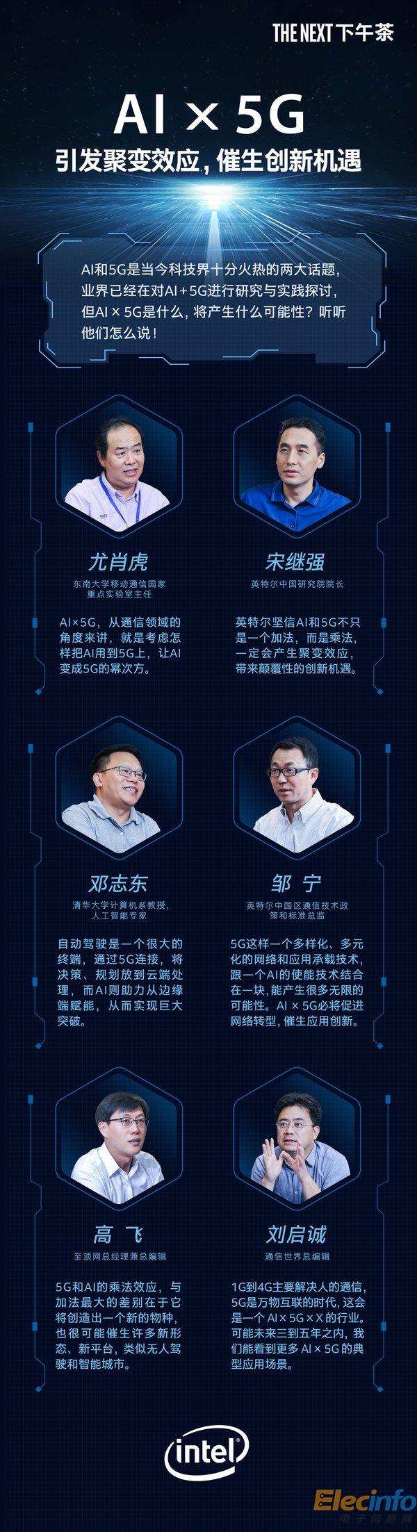近日,英特爾舉辦了一場(chǎng)以“AIx5G”為主題的“THE NEXT 下午茶”專家座談會(huì),就 AIx5G 的聚變效應(yīng)和無(wú)限機(jī)遇進(jìn)行思想碰撞。“THE NEXT 下午茶”是英特爾發(fā)起的聚焦前沿話題、共話數(shù)據(jù)未來的系列活動(dòng)。在本期座談會(huì)上,東南大學(xué)移動(dòng)通信國(guó)家重點(diǎn)實(shí)驗(yàn)室主任尤肖虎教授,清華大學(xué)計(jì)算機(jī)系教授及博士生導(dǎo)師、人工智能專家鄧志東教授,以及兩位在 IT 和通信領(lǐng)域有多年經(jīng)驗(yàn)的資深媒體人高飛和劉啟誠(chéng),與英特爾中國(guó)研究院院長(zhǎng)宋繼強(qiáng)和中國(guó)區(qū)通信技術(shù)政策和標(biāo)準(zhǔn)總監(jiān)鄒寧一起,暢談了 AI 和 5G 的關(guān)系以及未來前景,并達(dá)成以下共識(shí):