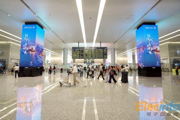 虹橋機(jī)場T2航站樓國內(nèi)到達(dá)全維度無邊全景數(shù)碼雙柱