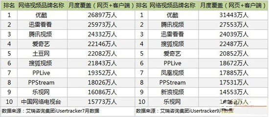 根據(jù)近期艾瑞iUserTracker公布的一系列視頻網(wǎng)站運營數(shù)據(jù)顯示:2012年7月,單從網(wǎng)頁覆蓋量來看,排名前三的分別為優(yōu)酷、土豆、愛奇藝,但綜合網(wǎng)頁和客戶端覆蓋量后,優(yōu)酷以2.69億的月度覆蓋量保持行業(yè)優(yōu)勢地位,緊跟其后的則是迅雷看看和騰訊視頻,迅雷看看以略遜于優(yōu)酷的2.6億綜合覆蓋能力,居視頻行業(yè)第二,騰訊視頻則以2.4億的用戶覆蓋量排名第三;從9月數(shù)據(jù)顯示,綜合網(wǎng)頁和客戶端覆蓋量,優(yōu)酷、迅雷看看、騰訊視頻依然保持行業(yè)前三的位置;而從艾瑞發(fā)布的10月最新數(shù)據(jù),迅雷看看以日均3624萬的綜合用戶覆蓋能力持續(xù)占據(jù)行業(yè)前三位置。