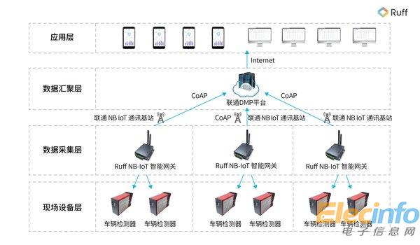 數(shù)據(jù)采集層:通過Ruff NB-IoT智能網(wǎng)關(guān)連接車輛檢測器設備,實時監(jiān)測車輛檢測器狀態(tài)、環(huán)境溫濕度、GPS位置信息;