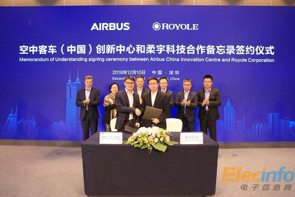 2018年12月10日,柔宇科技有限公司(Royole Corporation)與空中客車中國創(chuàng)新中心(Airbus China Innovation Centre,ACIC)在深圳正式簽署戰(zhàn)略合作備忘錄,雙方將就柔性電子技術(shù)在飛機(jī)客艙等場景的應(yīng)用和商業(yè)合作開展研究。空中客車中國公司CEO徐崗、柔宇科技董事長兼CEO劉自鴻、空中客車中國創(chuàng)新中心CEO羅崗等出席簽約儀式。