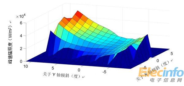 散射屏上的峰值輻照度作為輸入陽光角度的函數(shù)