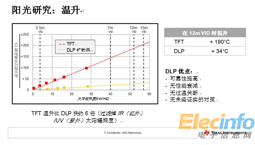 在85°C的環(huán)境溫度下,由于其低光譜吸收和高工作溫度的特性,HUD系統(tǒng)中采用DLP技術(shù)的Kuraray散射屏可以承受高達82kW/m2的太陽輻照度。這種熱性能使DLP技術(shù)能夠支持AR HUD中的長虛像距離。