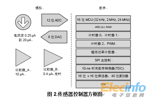 圖2.傳感器控制器方框圖(圖片來源于德州儀器)