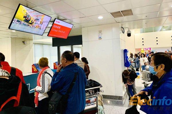 旅客在臺(tái)北桃園國(guó)際機(jī)場(chǎng)辦理登機(jī)手續(xù)