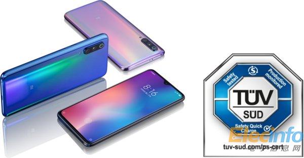 小米9手機獲得TUV 南德安全快充認證證書
